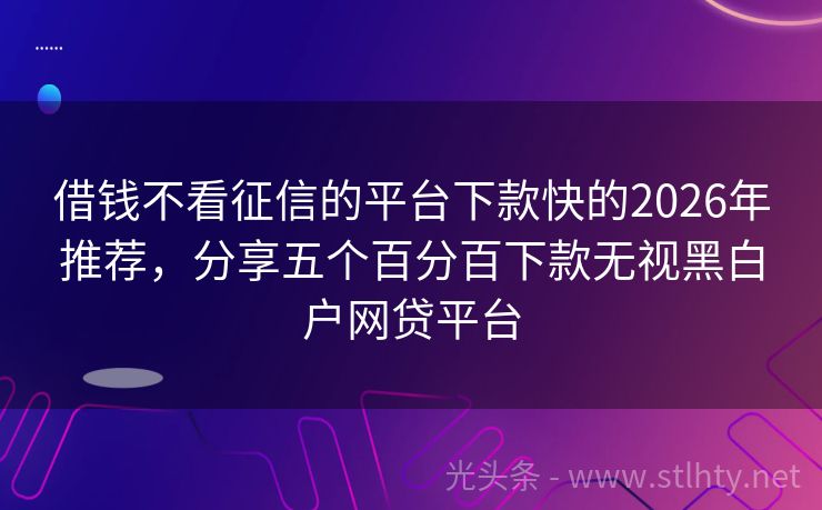 借钱不看征信的平台下款快的2026年推荐,分享五个百分百下款无视黑白户网贷平台
