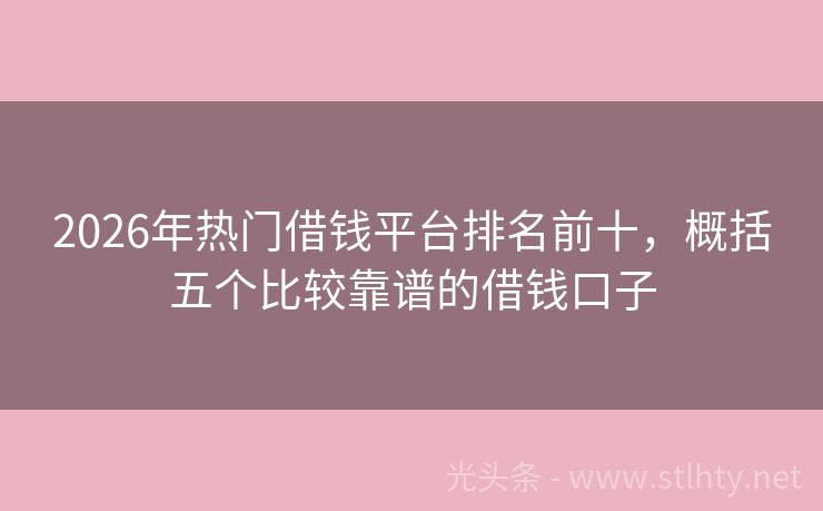 2026年热门借钱平台排名前十,概括五个比较靠谱的借钱口子