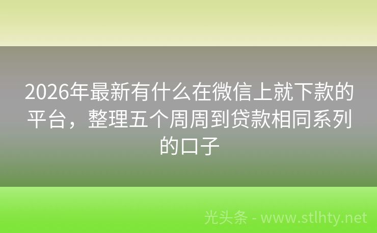 2026年最新有什么在微信上就下款的平台,整理五个周周到贷款相同系列的口子