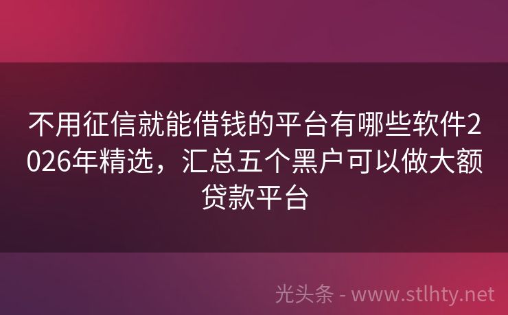 不用征信就能借钱的平台有哪些软件2026年精选,汇总五个黑户可以做大额贷款平台