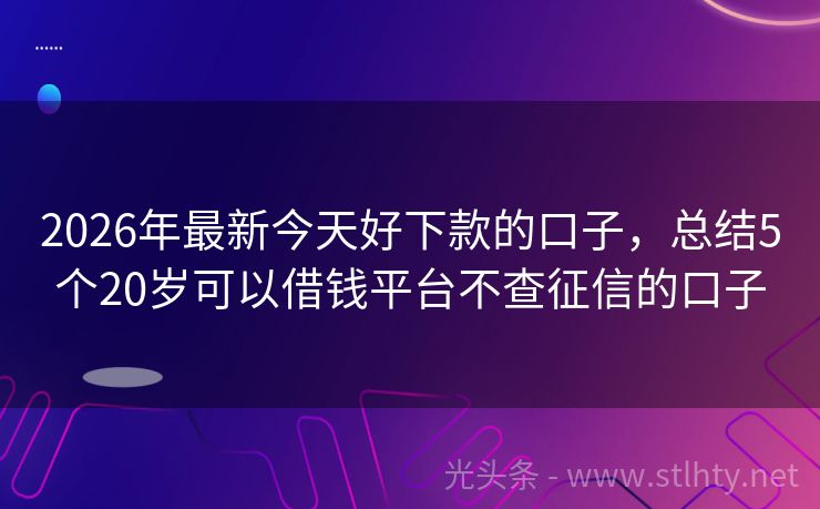 2026年最新今天好下款的口子,总结5个20岁可以借钱平台不查征信的口子