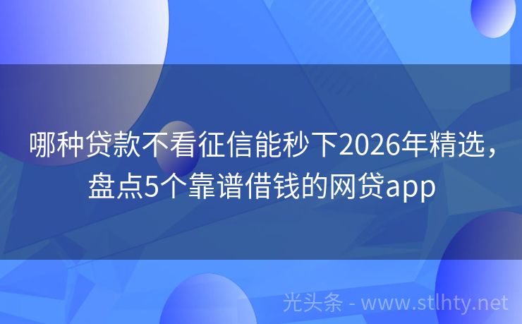哪种贷款不看征信能秒下2026年精选,盘点5个靠谱借钱的网贷app
