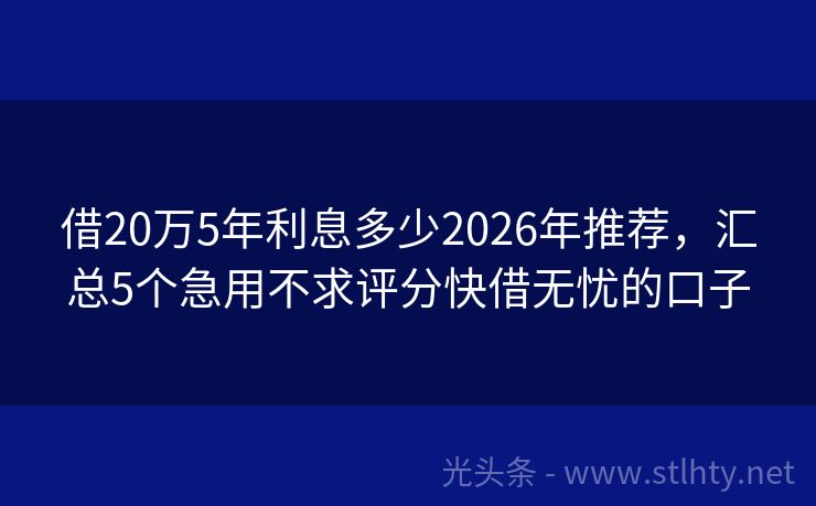 2026年的借20万5年利息多少有:信用快贷、现金速融、涌泉金服、玛瑙分期、现金易借宝等。