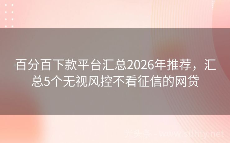 百分百下款平台汇总2026年推荐,汇总5个无视风控不看征信的网贷