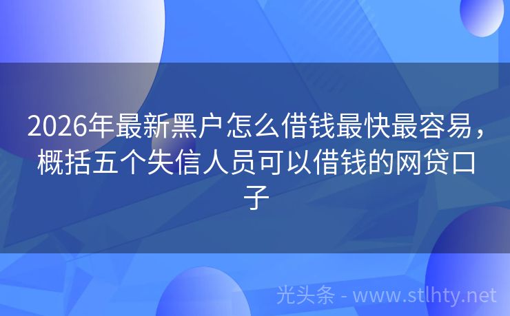 2026年最新黑户怎么借钱最快最容易,概括五个失信人员可以借钱的网贷口子