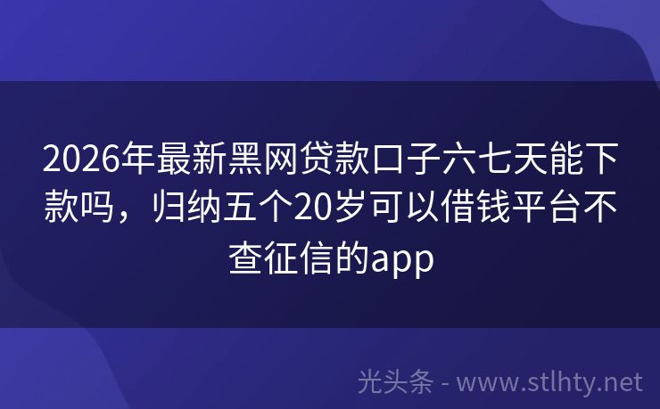 2026年最新黑网贷款口子六七天能下款吗,归纳五个20岁可以借钱平台不查征信的app
