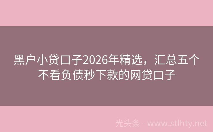 黑户小贷口子2026年精选,汇总五个不看负债秒下款的网贷口子