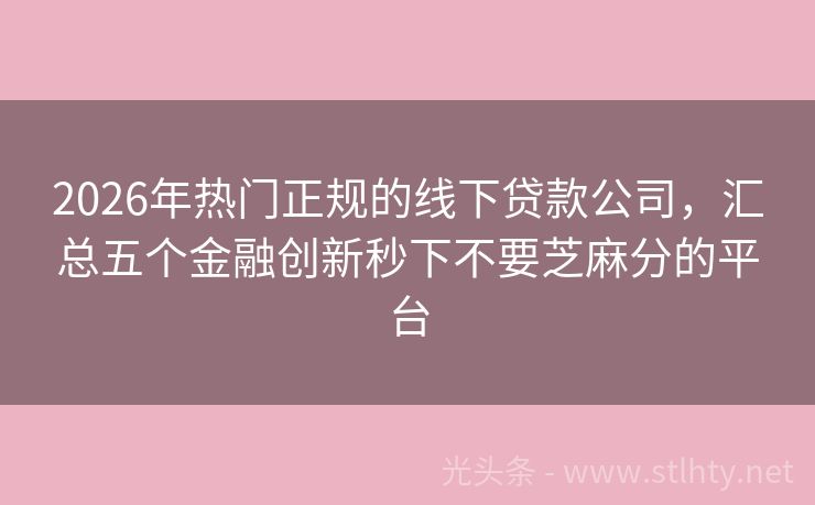 2026年热门正规的线下贷款公司,汇总五个金融创新秒下不要芝麻分的平台