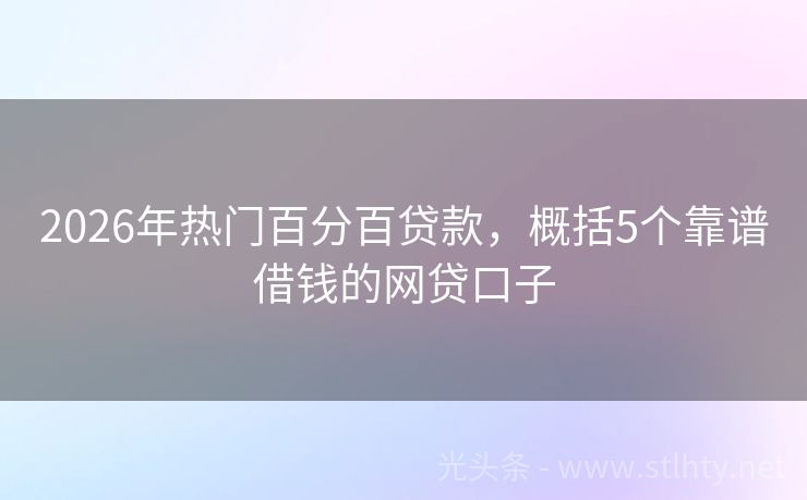 2026年热门百分百贷款,概括5个靠谱借钱的网贷口子