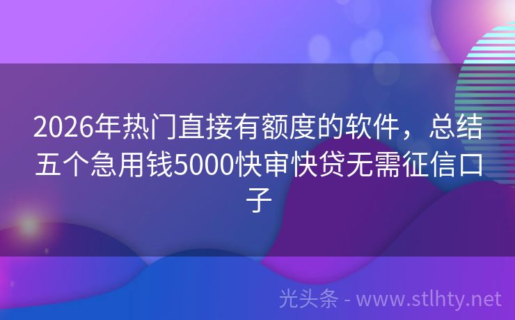 2026年热门直接有额度的软件,总结五个急用钱5000快审快贷无需征信口子