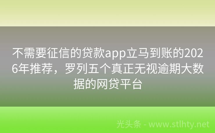 不需要征信的贷款app立马到账的2026年推荐,罗列五个真正无视逾期大数据的网贷平台