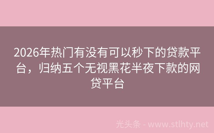 2026年热门有没有可以秒下的贷款平台,归纳五个无视黑花半夜下款的网贷平台