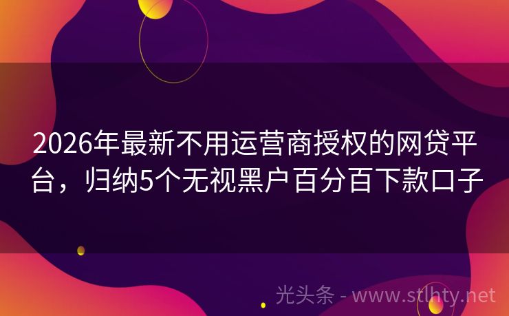 2026年最新不用运营商授权的网贷平台,归纳5个无视黑户百分百下款口子