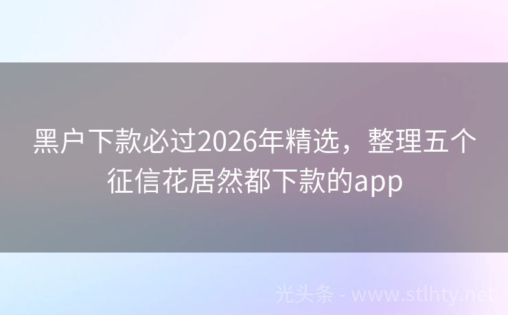 黑户下款必过2026年精选,整理五个征信花居然都下款的app