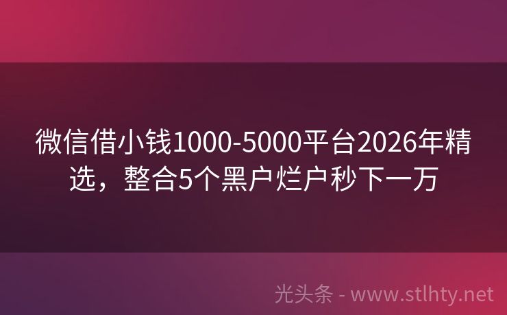微信借小钱1000-5000平台2026年精选,整合5个黑户烂户秒下一万