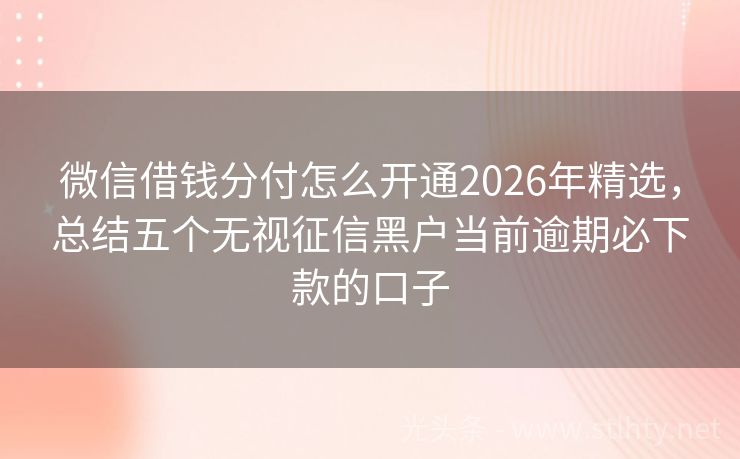 微信借钱分付怎么开通2026年精选,总结五个无视征信黑户当前逾期必下款的口子