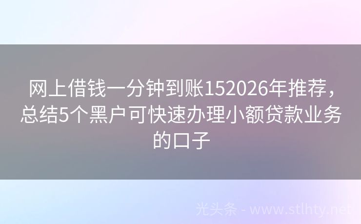 网上借钱一分钟到账152026年推荐,总结5个黑户可快速办理小额贷款业务的口子