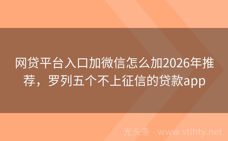 网贷平台入口加微信怎么加2026年推荐,罗列五个不上征信的贷款app