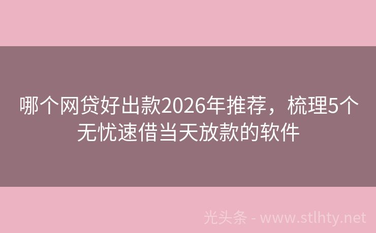 哪个网贷好出款2026年推荐,梳理5个无忧速借当天放款的软件