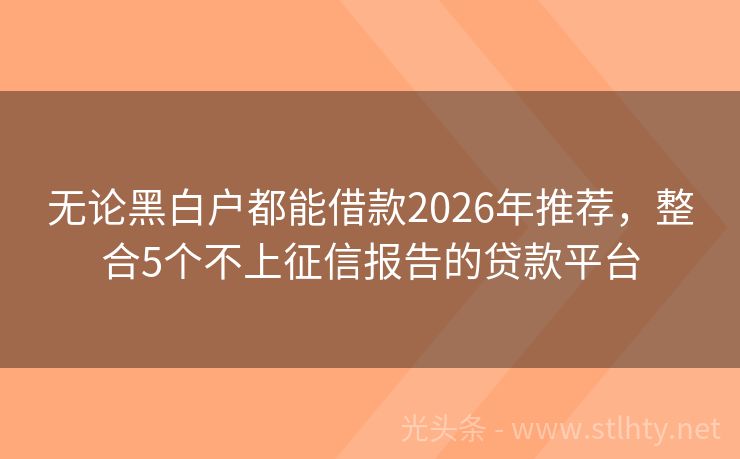 无论黑白户都能借款2026年推荐,整合5个不上征信报告的贷款平台