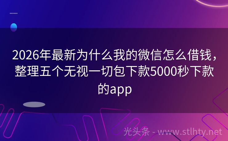 2026年最新为什么我的微信怎么借钱,整理五个无视一切包下款5000秒下款的app