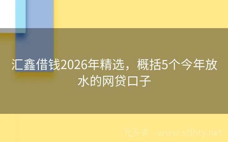 汇鑫借钱2026年精选,概括5个今年放水的网贷口子