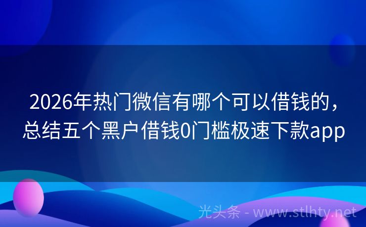2026年热门微信有哪个可以借钱的,总结五个黑户借钱0门槛极速下款app