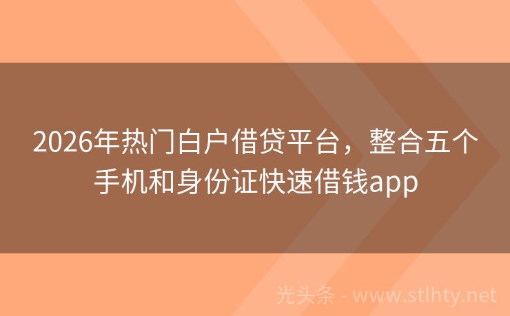 2026年热门白户借贷平台,整合五个手机和身份证快速借钱app