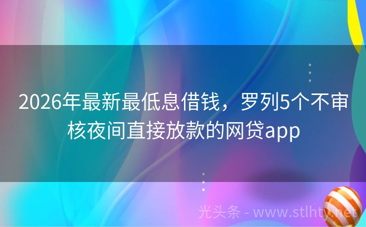 2026年最新最低息借钱,罗列5个不审核夜间直接放款的网贷app