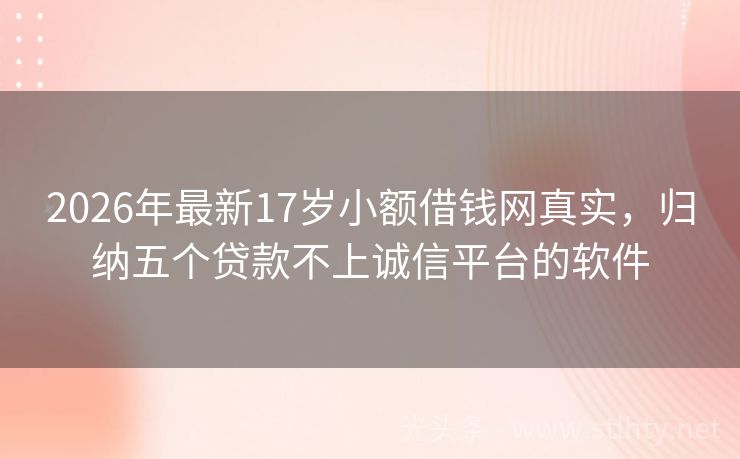 2026年最新17岁小额借钱网真实,归纳五个贷款不上诚信平台的软件