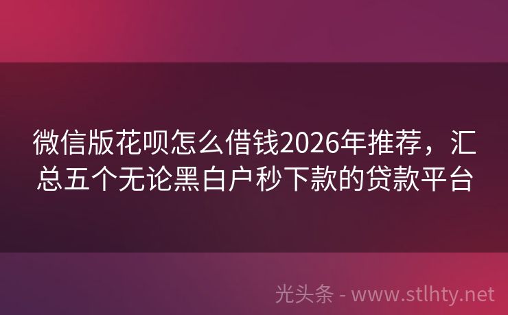 微信版花呗怎么借钱2026年推荐,汇总五个无论黑白户秒下款的贷款平台