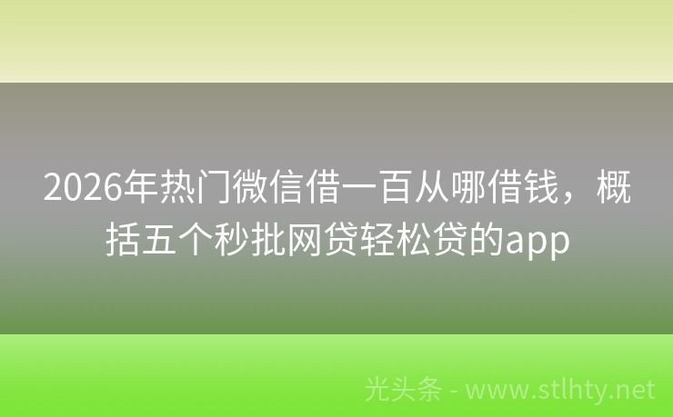 2026年热门微信借一百从哪借钱,概括五个秒批网贷轻松贷的app