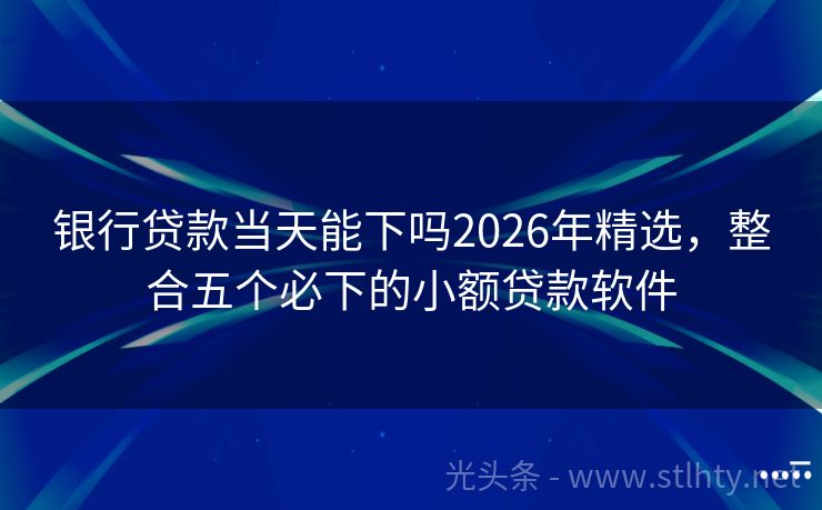 银行贷款当天能下吗2026年精选,整合五个必下的小额贷款软件