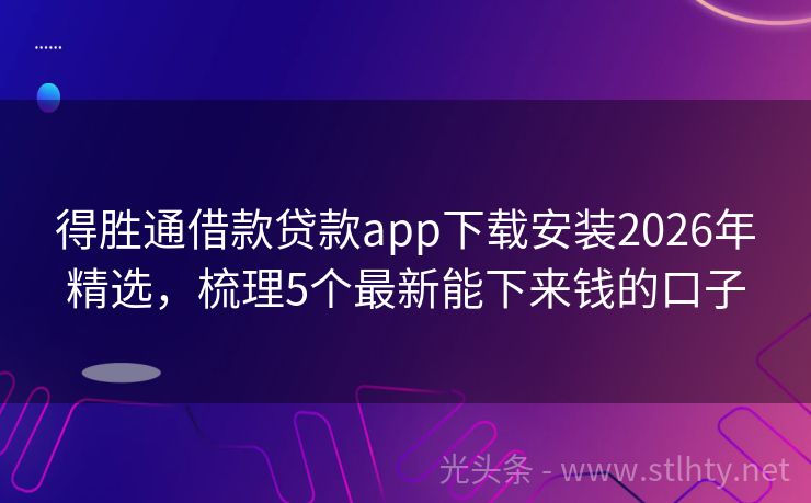 得胜通借款贷款app下载安装2026年精选,梳理5个最新能下来钱的口子
