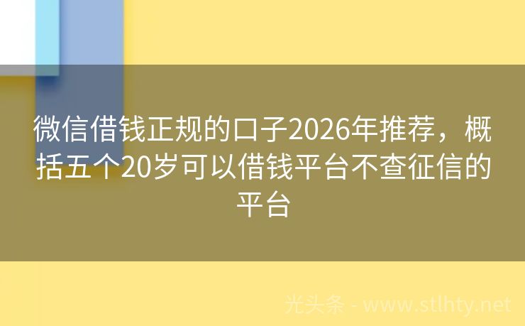 微信借钱正规的口子2026年推荐,概括五个20岁可以借钱平台不查征信的平台