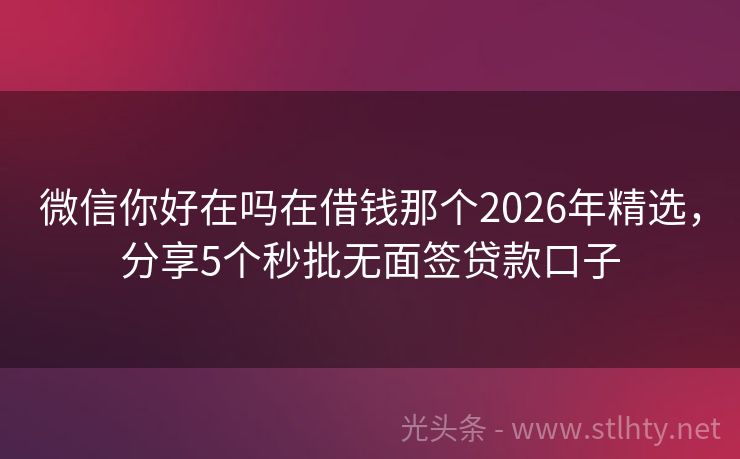 微信你好在吗在借钱那个2026年精选,分享5个秒批无面签贷款口子