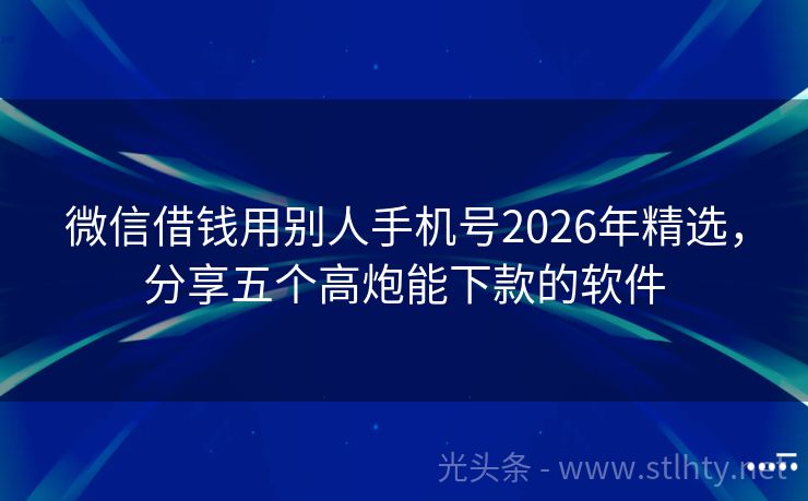 微信借钱用别人手机号2026年精选,分享五个高炮能下款的软件