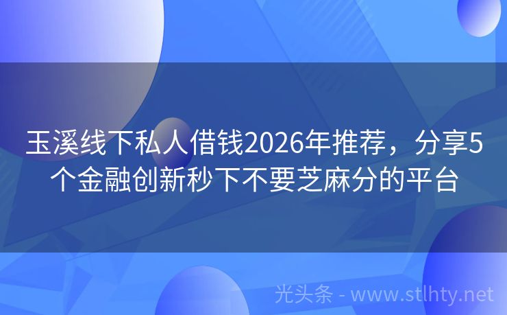 玉溪线下私人借钱2026年推荐,分享5个金融创新秒下不要芝麻分的平台