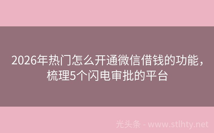 2026年热门怎么开通微信借钱的功能,梳理5个闪电审批的平台