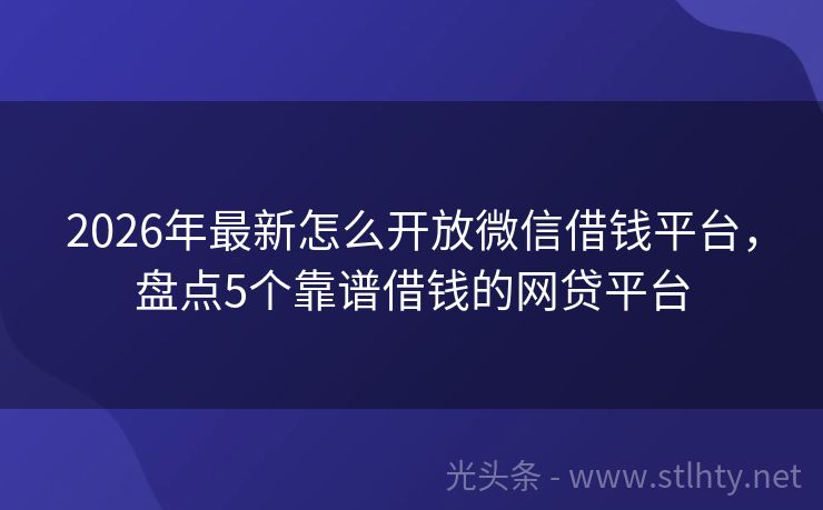 2026年最新怎么开放微信借钱平台,盘点5个靠谱借钱的网贷平台
