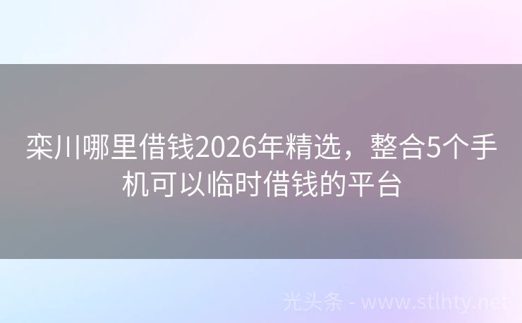 栾川哪里借钱2026年精选,整合5个手机可以临时借钱的平台