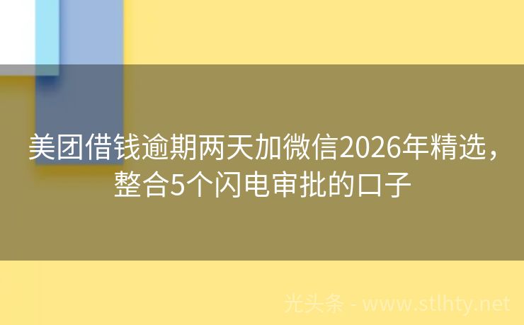 美团借钱逾期两天加微信2026年精选,整合5个闪电审批的口子