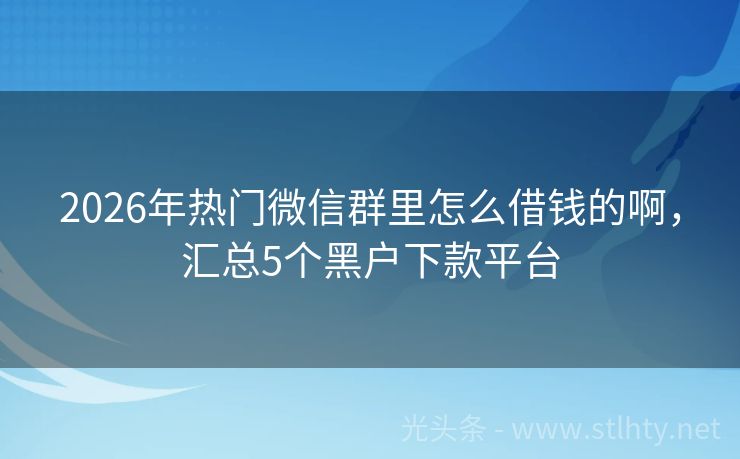 2026年热门微信群里怎么借钱的啊,汇总5个黑户下款平台