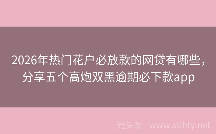 2026年热门花户必放款的网贷有哪些,分享五个高炮双黑逾期必下款app