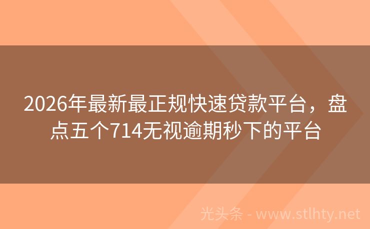 2026年最新最正规快速贷款平台,盘点五个714无视逾期秒下的平台