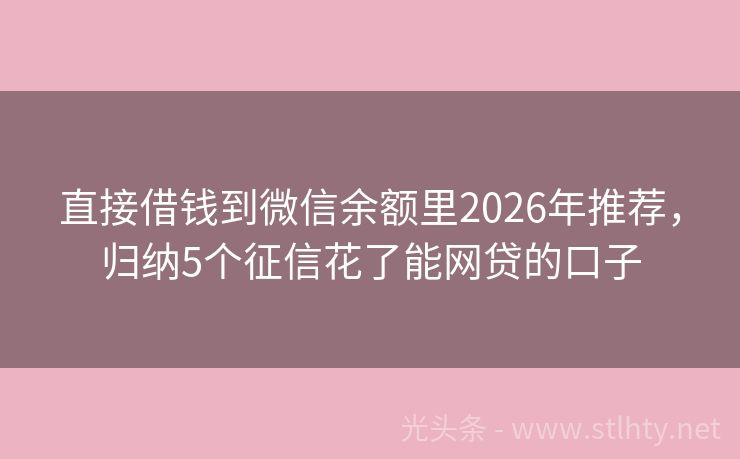 直接借钱到微信余额里2026年推荐,归纳5个征信花了能网贷的口子