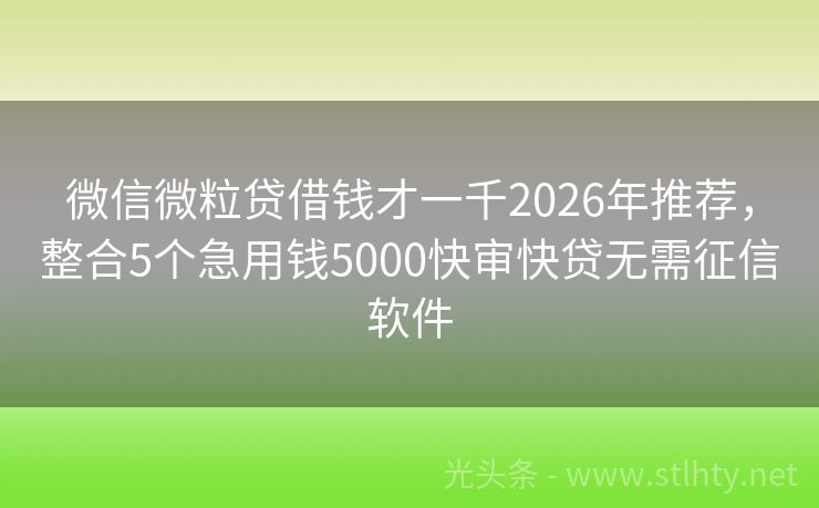 微信微粒贷借钱才一千2026年推荐,整合5个急用钱5000快审快贷无需征信软件