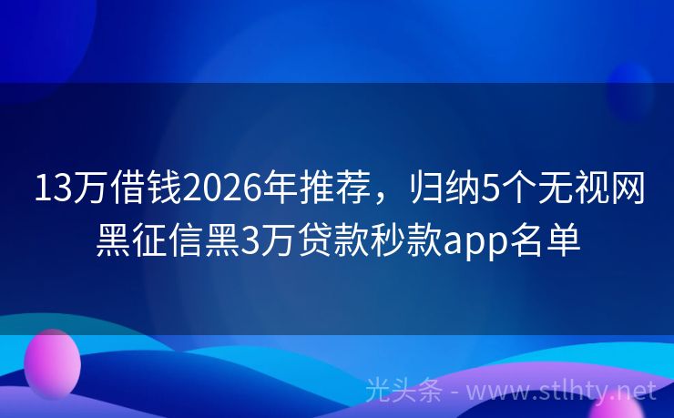 13万借钱2026年推荐,归纳5个无视网黑征信黑3万贷款秒款app名单
