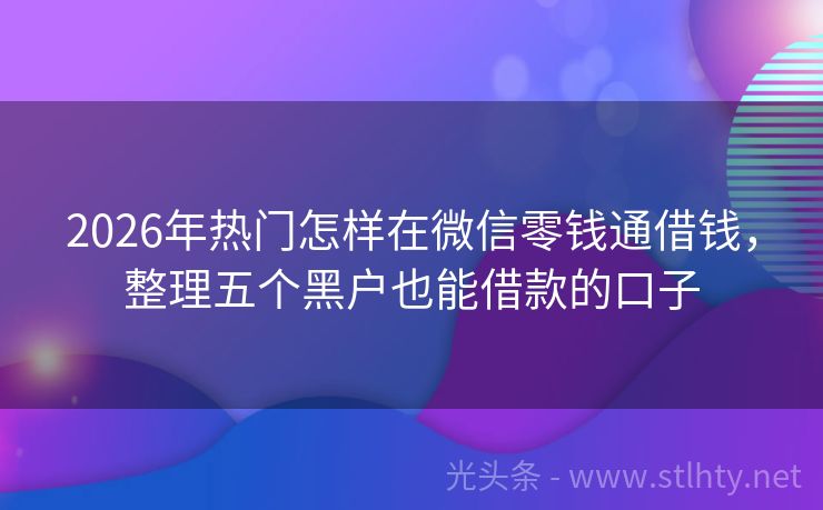 2026年热门怎样在微信零钱通借钱,整理五个黑户也能借款的口子