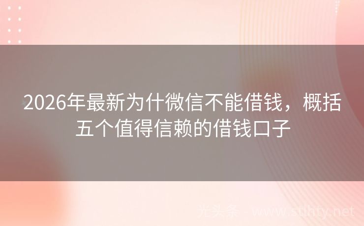 2026年最新为什微信不能借钱,概括五个值得信赖的借钱口子